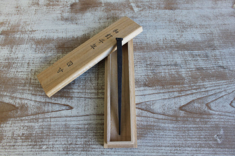 Use to hold down or align papers. It is made of Japanese evergreen oak, which is relatively hard and heavy. - Hyo-shigi (wooden hammer)