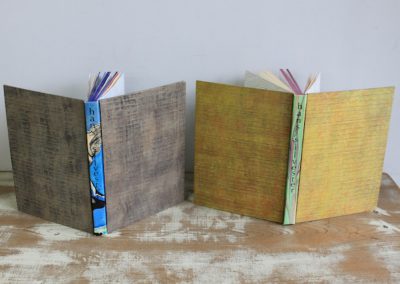 A collection of works by Nao Inoue, blending European and Japanese bookbinding techniques with traditional Japanese materials, showcasing the beauty and craftsmanship of hand-bound books.